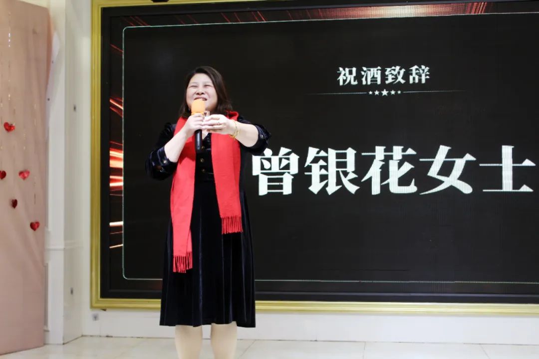 十堰猛獅董事長曾銀花女士隨后發表了熱情洋溢、激動人心的祝酒辭,為參加年會的現場嘉賓、全體員工送上了2025蛇年新春祝福。
