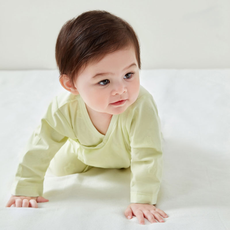 優(yōu)質(zhì)精梳棉針織提花面料,柔軟、舒適、透氣; 提花面料具有肌理感,整體清新淡雅;